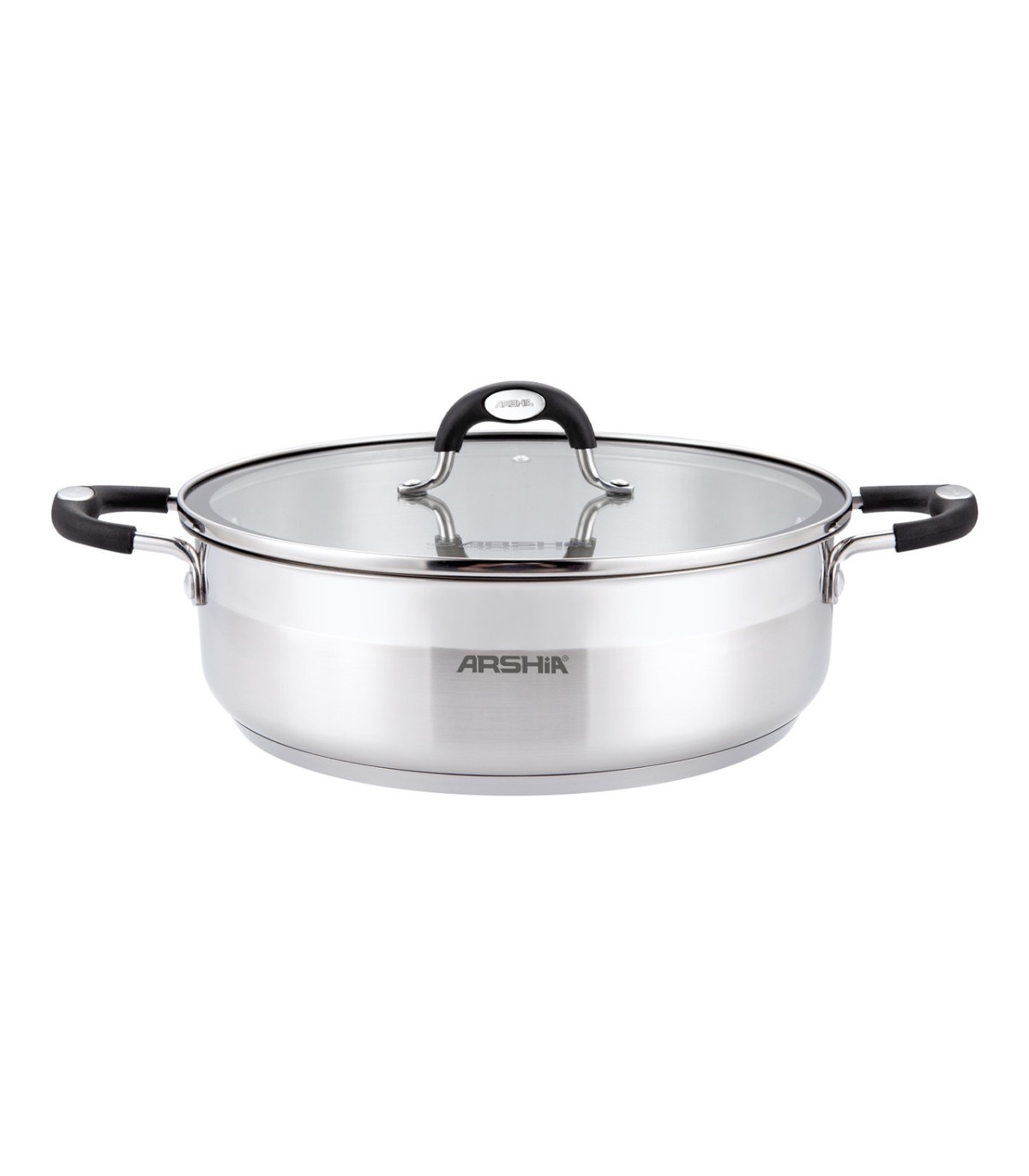 ماهیتابه استیل عرشیا سایز 28 دو درب (درب شیشه ای+ درب استیل)           مدل 2980 انتخاب کامل آشپزخانه با استیل ضد زنگ 18/10: فلز این نوع ماهی تابه با دوام استثنایی، توزیع حرارت عالی و طراحی مدرن براق را ارائه می دهد....